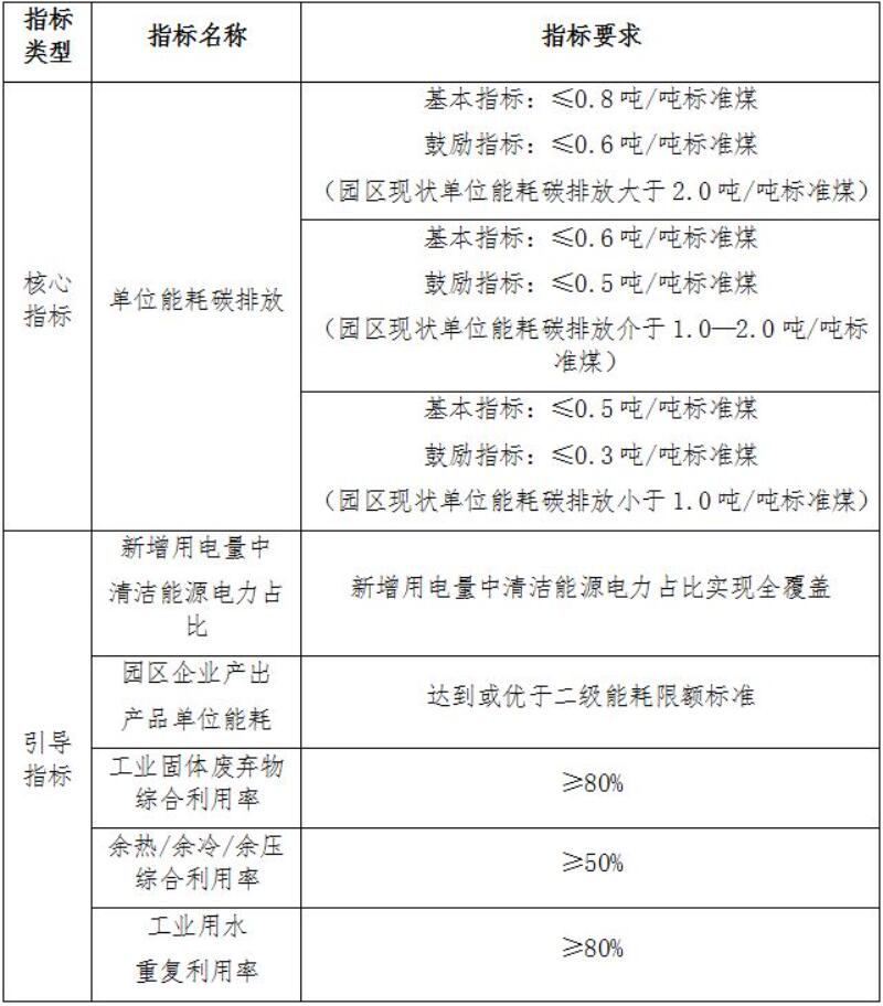 核心指标:零碳园区建设必须达到的目标,是园区验收评估的首要条件,按照园区年综合能耗规模分为两类。达不到核心指标要求的园区,原则上不得申请验收。