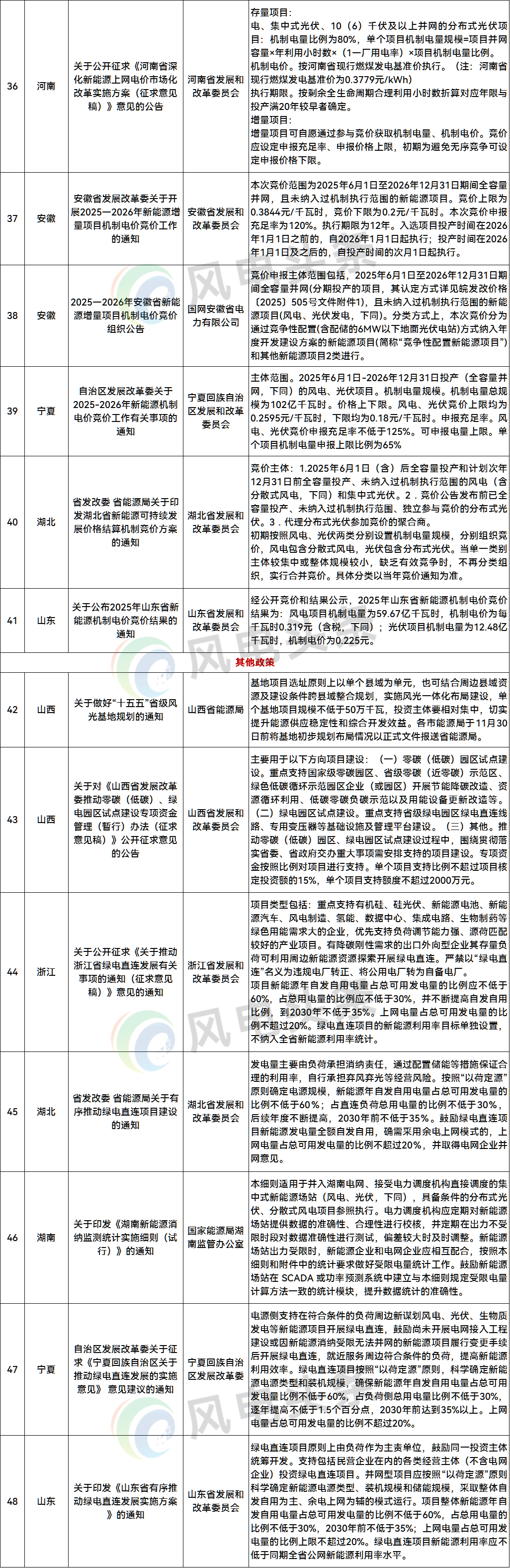 在其他政策方面,山西关于做好“十五五”省级风光基地规划指出,基地项目选址原则上以单个县域为单元,也可结合周边县域资源及建设条件跨县域整合规划,实施风光一体化布局建设,单个基地项目规模不低于50万千瓦。