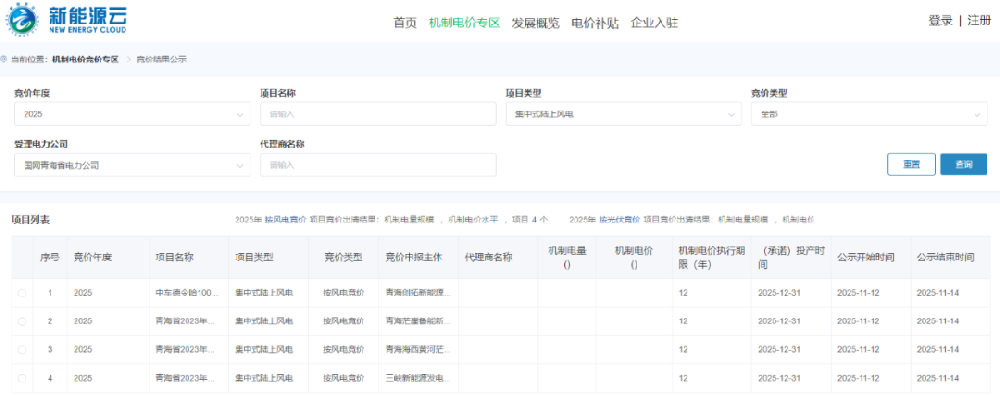 根据结果公示,2025年按风电竞价项目竞价出清结果:机制电量规模542999.999兆瓦时,机制电价水平0.240000元/千瓦时,项目4个;